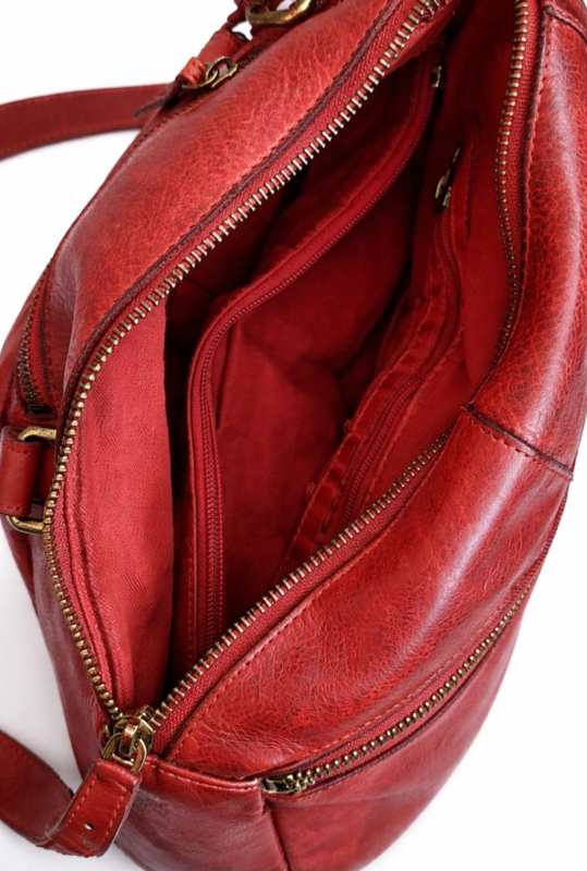Hill-burry leren schoudertas gewassen leer rood