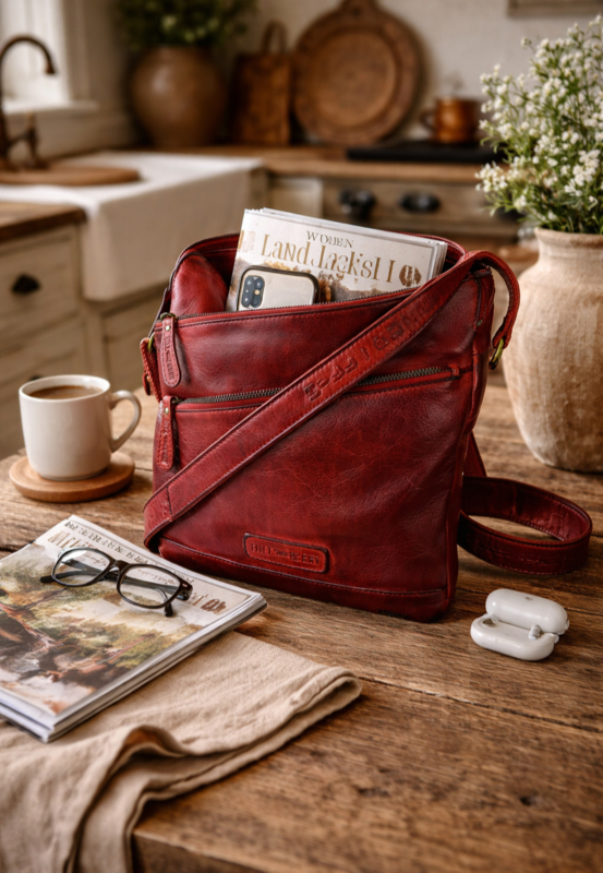 Hill-burry schoudertas gewassen leer/ rood