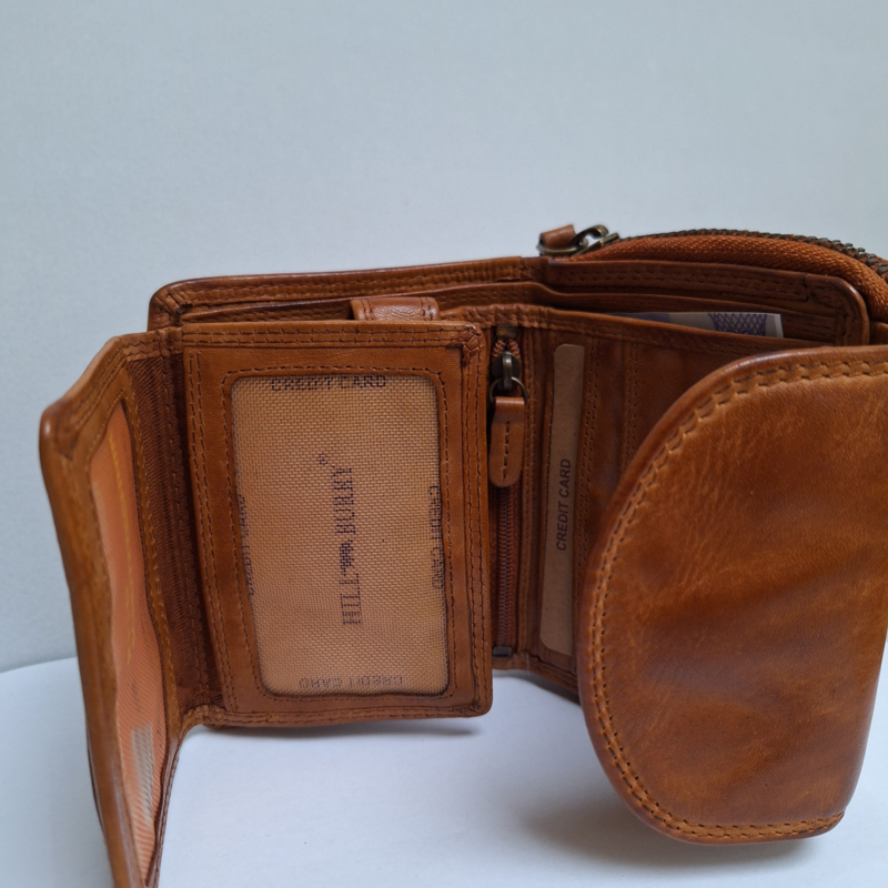OverzichtDeze mooi portemonnee van Hillburry is gemaakt van gewassen leer.
